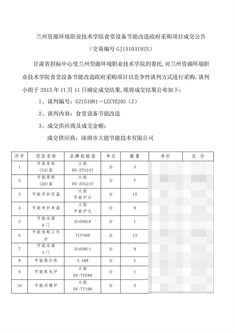 熱烈祝賀深圳市大能節(jié)能技術(shù)有限公司再次中標(biāo)蘭州資源環(huán)境技術(shù)學(xué)院食堂設(shè)備節(jié)能改造政府采購項(xiàng)目!!
