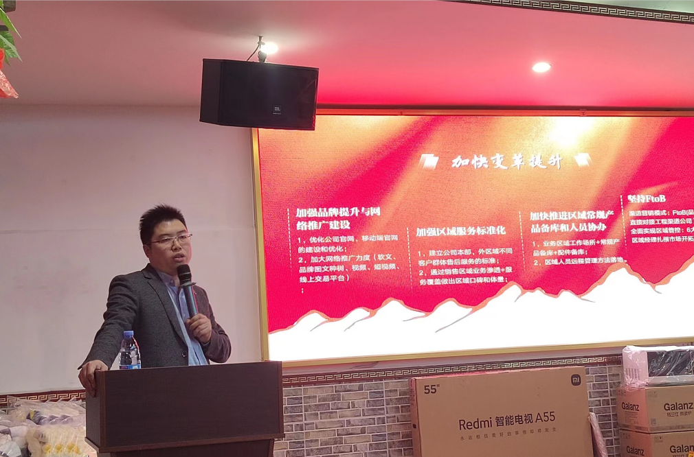 隨后,銷售部總監(jiān)巨川平發(fā)表了演講。對去年公司的整體銷售數(shù)據(jù)進行匯報,在過去一年里新增客戶單位1600家,新增300%老客戶業(yè)績,組織籌辦了3次展會。并統(tǒng)一了市場開發(fā)策略,他強調(diào)了銷售工作的重要性和挑戰(zhàn)性,并表示將在新的一年里繼續(xù)挑戰(zhàn)更高的業(yè)績目標,加強團隊建設,提高員工素質(zhì)和專業(yè)技能,以更好地服務客戶,提升公司品牌形象和市場競爭力。
